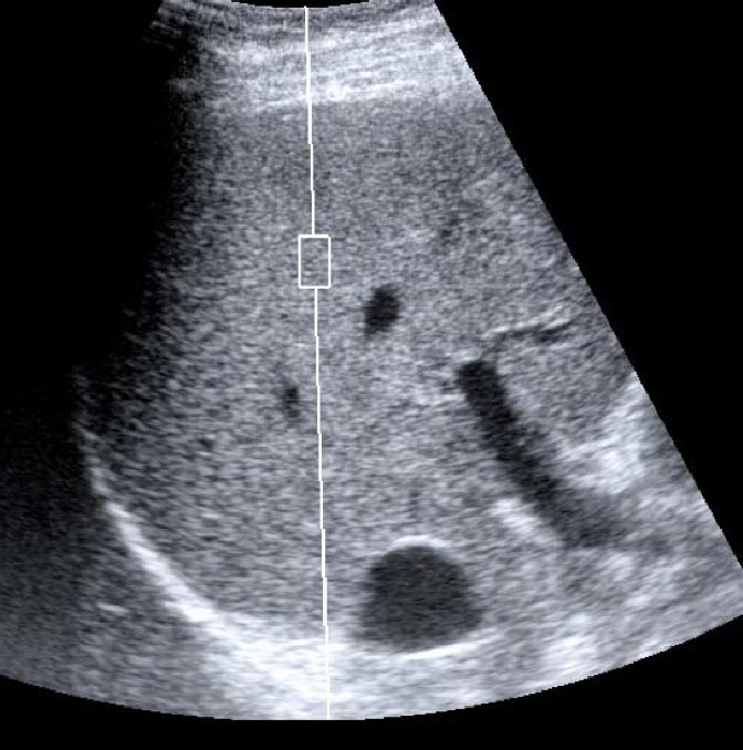 La técnica de valoración cuantitativa de la elasticidad, aplicada al hígado, tendría mucho que ver con la elastografía hepática de transición o FibroScan®, la cual, aplicando una onda de ultrasonido obtiene su velocidad de propagación en el tejido a estudio y la expresa en kPa. Sin embargo, la elastografía tanto semi como cuantitativa presenta la gran ventaja de estar incorporada al sistema de un equipo de ecografía convencional, lo que nos permite ser más precisos en la elección del fragmento de parénquima hepático a analizar. De esta manera conseguimos evitar estructuras que falseen los resultados obtenidos, como la interposición de vasos sanguíneos y costillas o la inclusión de cápsula hepática, hechos que no se pueden controlar con el FibroScan®, ya que este no presenta una imagen asociada. Así mismo, con la elastografía podemos obtener resultados adecuados en pacientes obesos con un índice de masa corporal ≥ 40 kg/m2 e incluso en pacientes con ascitis. Estos supuestos anteriores constituyen 2 limitaciones actuales del FibroScan®.