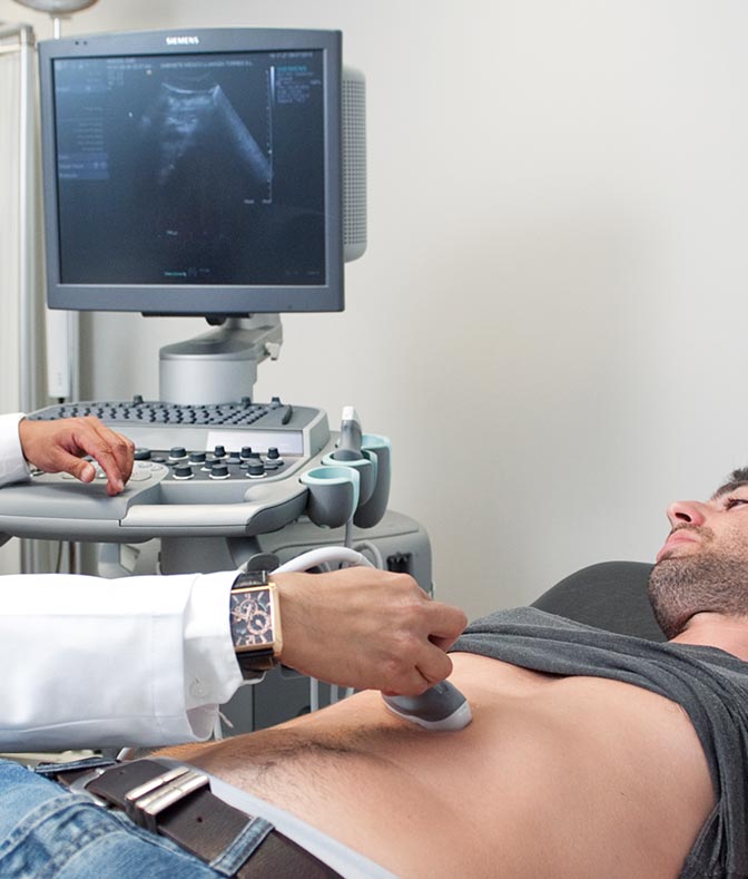 Para ello, somos propietarios de un equipo de ultrasonografia Acuson 2000 – Siemens, que cuenta con los paquetes de análisis avanzados de hígado, tanto con la tecnología Acoustic Radiation Force Impulse (ARFI) para elastografía hepática y de secuencias de impulsos de contraste, que permite la cuantificación de contraste hepático (que no hace uso de derivado de iodo ni otros contrastes alergénicos de uso común) para la caracterización de lesiones sólidas hepáticas principalmente; de esta forma somos uno de los pocos centros en España que ofrece métodos de diagnóstico no invasivos de última generación, y el único centro disponible para la práctica privada en la localidad con esta tecnología.